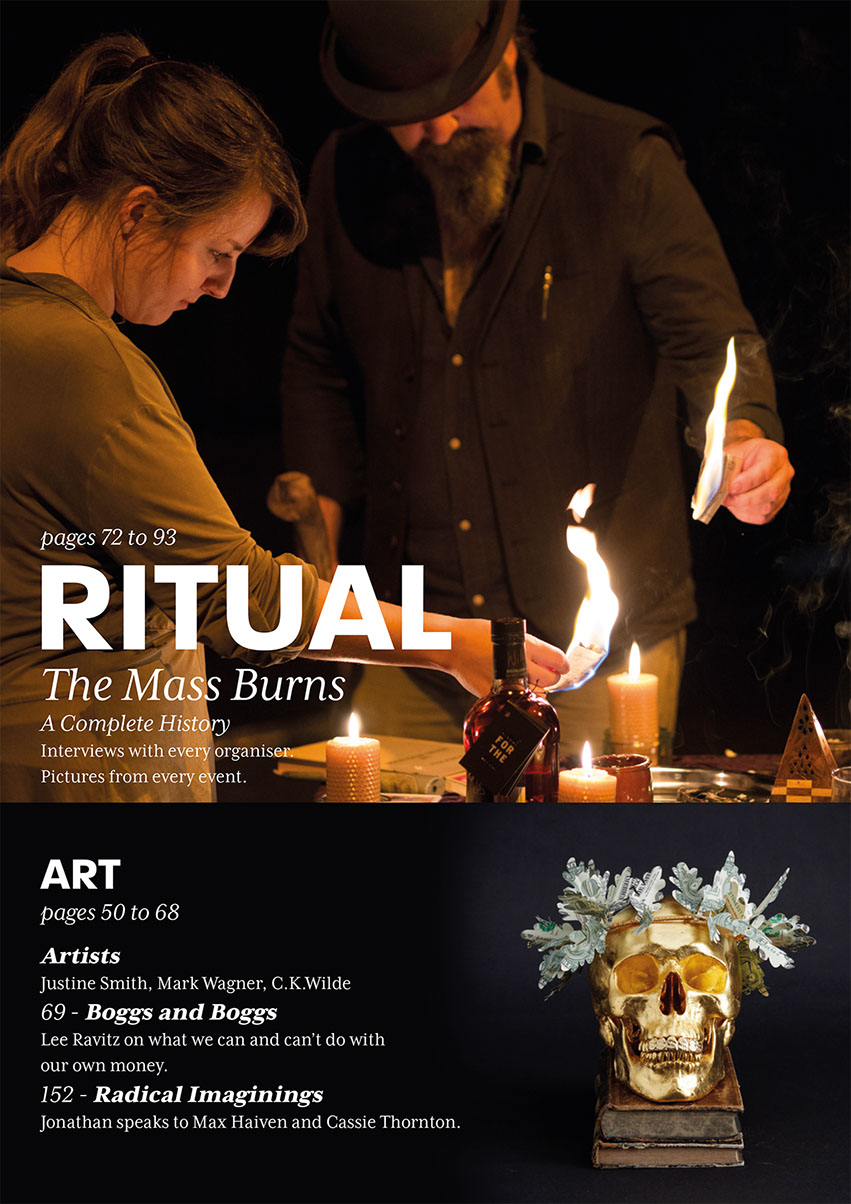The magazine was registered with the British Library as a 'Serial Publication' and was issued the ISSN 2516-8738. 1600 copies were produced. MBG remained as Editor. He was joined by Jonathan Greet (Dumdum, October Gallery) as Art Director and Principle Photographer and Michelle Olley (SkinTwo, Journey to Nutopia) as Sub-Editor. Church of Burn (then called Church of the Cosmic Burn) was appointed as the key distributor. They were also tasked by MBG to 'advise and assist' with promotion of the magazine. Church of Burn's involvement began with the launch of the crowdfunding campaign in 2017. The BRC expressed strong reservations about this approach fearing that it might attract funding - and ultimately a readership - from outside the community of money burners and other destroyers of currency which the magazine had promised to serve exclusively.