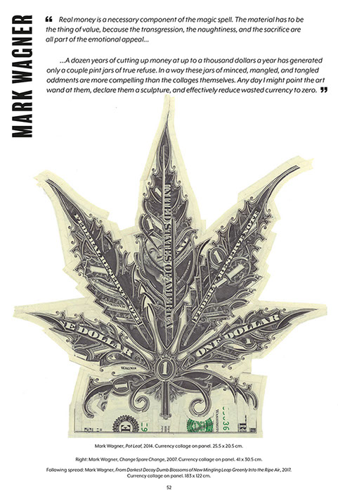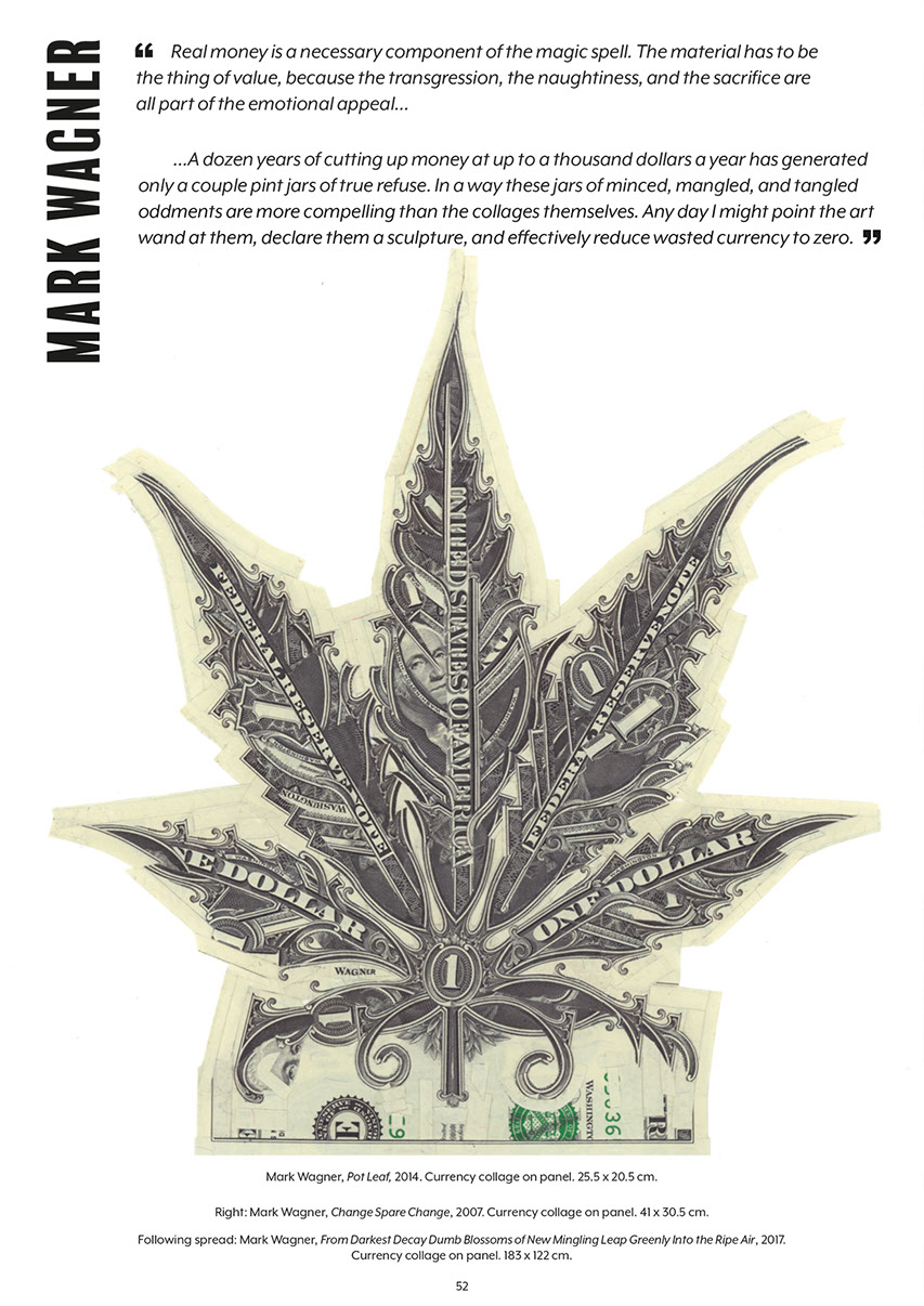 Much of the content from the original Volume One was included but there were important additions. Chaos Magician Dave Lee contributed a Fireside Tale about a 1971 money burning and Michelle Olley, Mark Sampson, and Adrian Raggio also added to the tally of personal accounts of sacrifice. The artistic support evident in the initial publication continued with more work supplied by Mark Wagner and new work from CK Wilde. Film-Maker John Lundeberg provided an essay in appreciation of Mark Wagner's money collage work and Heathcote Williams allowed a re-print of his poem 'Is Money Black Magic'. A piece of short fiction was provided by Petalengro. Michelle Olley also assisted MBG with sub-editing duties.