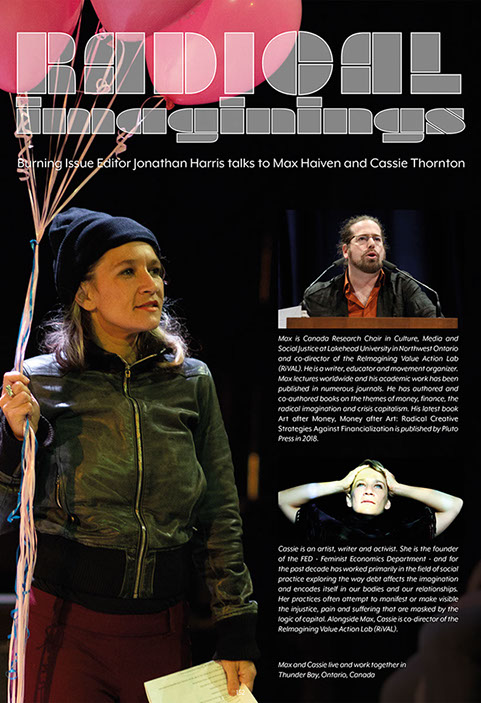 The first edition of Burning Issue Magazine - known as Burning Issue 'Issue One' (retrospectively retitled to 'Volume One') - was released on 23rd July 2016. It was an A4-sized stapled booklet of 28 pages (plus cover). Three 'Money Burning Propaganda' A3 posters (see below) were included within its cover price of £10. The print run was 75 and the magazine was launched at Festival 23 in Sheffield, England.